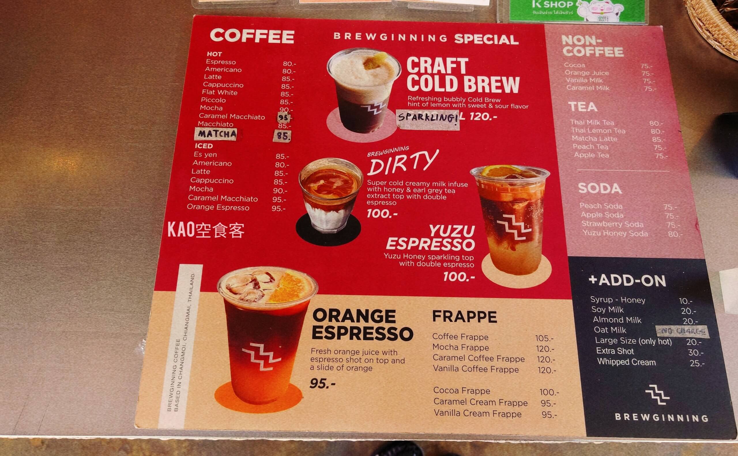Brew是沖煮、Beginnig是開始,相加變成了Brewginning,以咖啡開啟美好的一天。店家招牌飲品橘子咖啡,以清爽果香大受歡迎。雖然沒點,其他的咖啡飲品味道也不錯,看著遊人拍不停自己細細品咖啡。