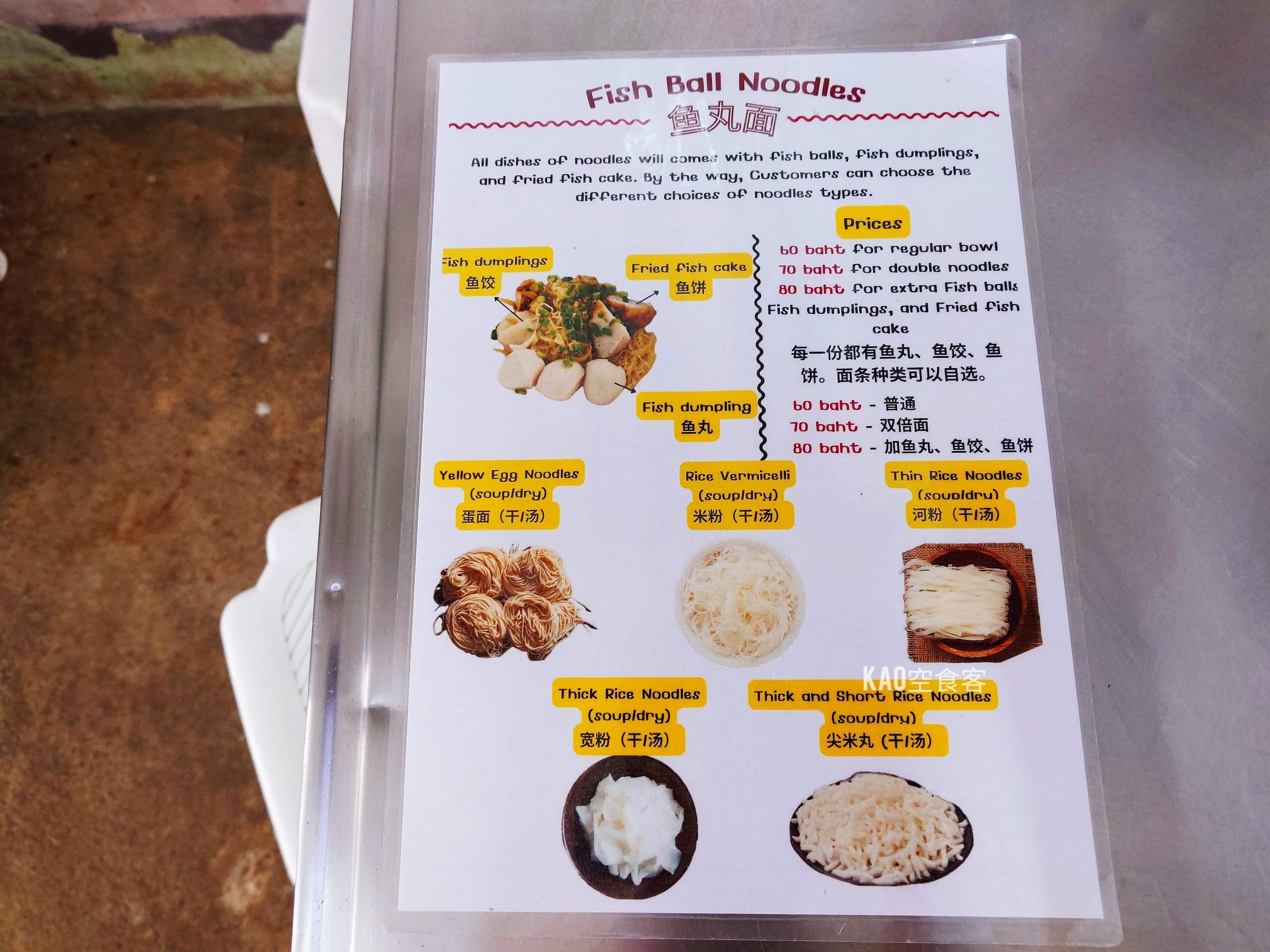 魚丸湯米粉 $60 泰銖 魚丸乾蛋麵 $60 泰銖