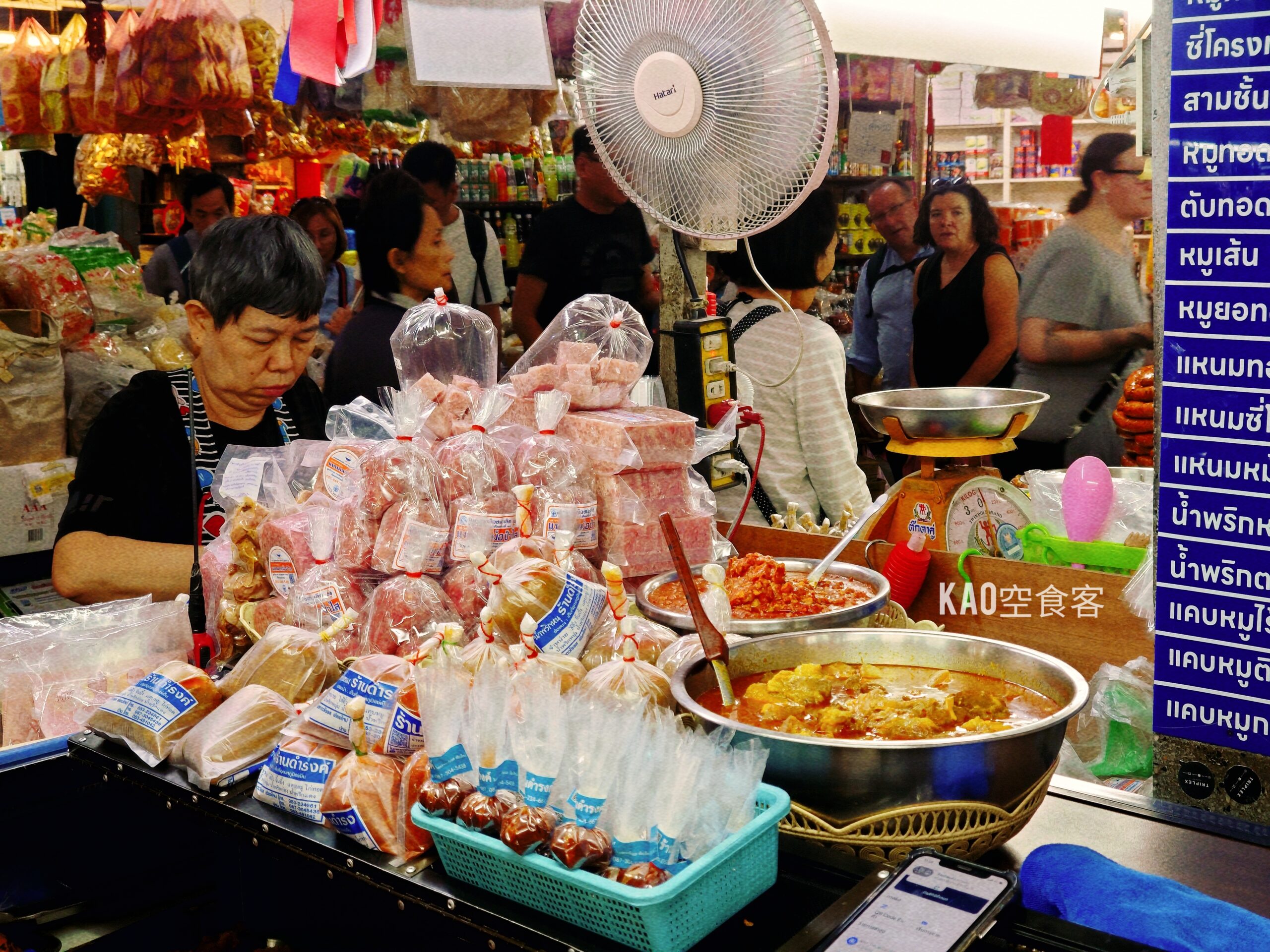 其實瓦洛洛市場另有兩家泰北香腸老字號Mae Hia Sai Oua和Mae Som Sai Oua,但當天最人在地人買的是Damrong。所以可想而知,當然是去人多的那家,好在味道確實好。