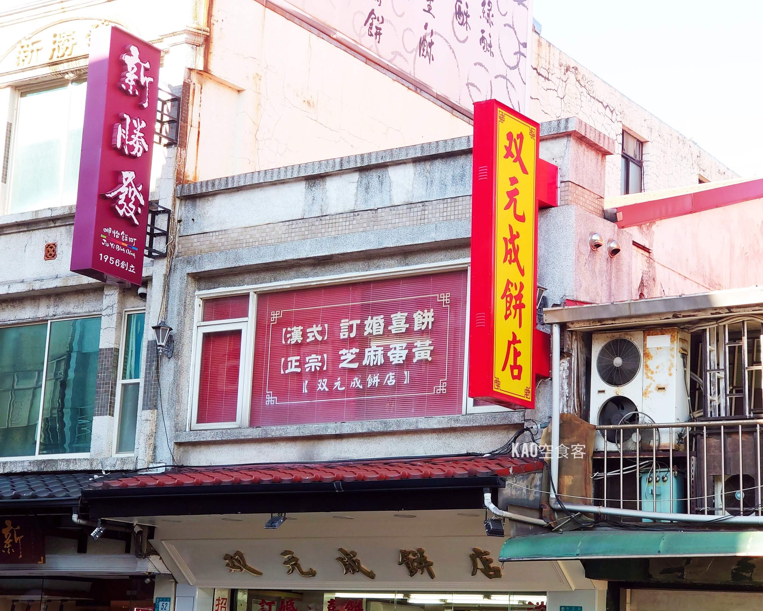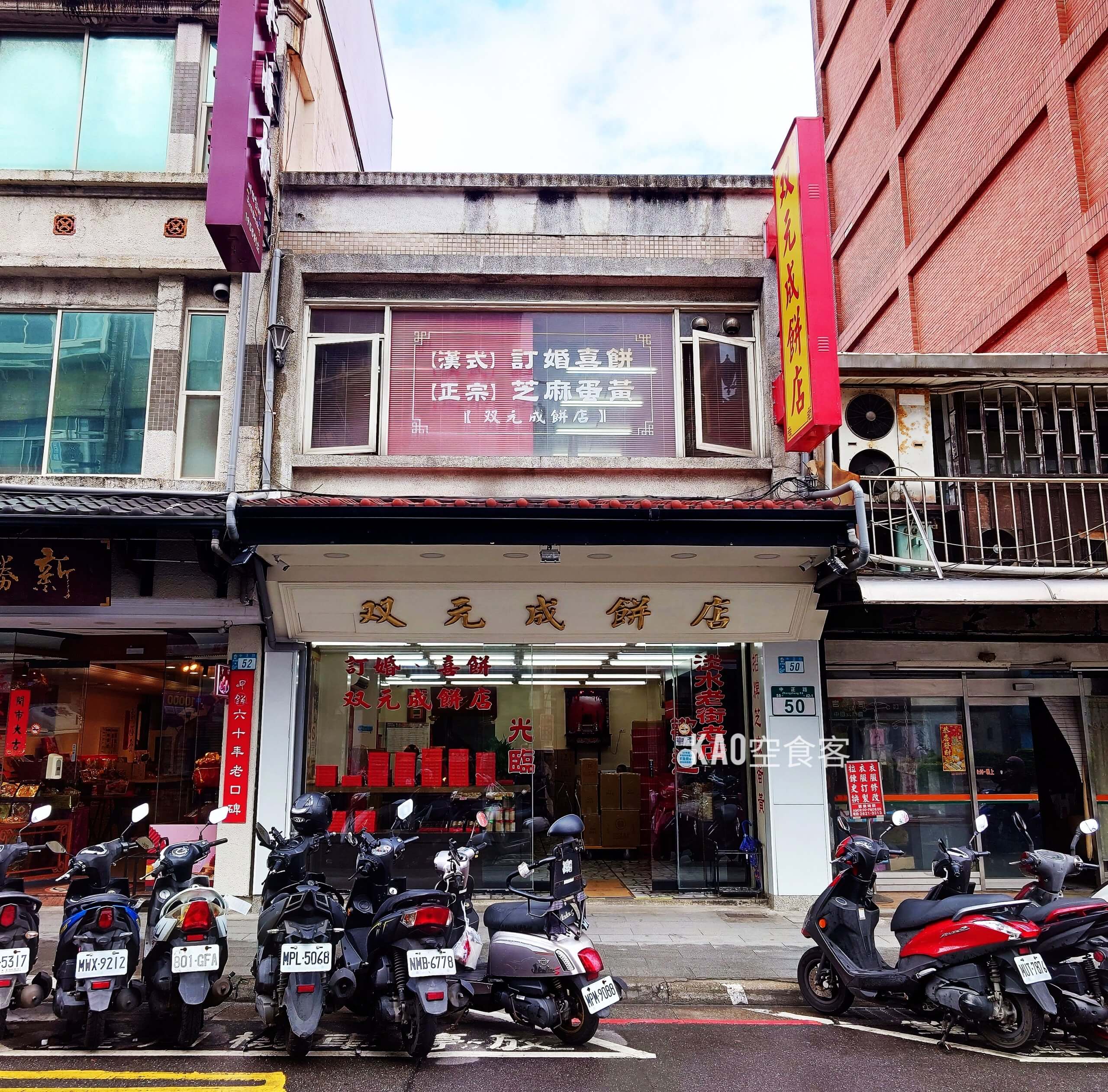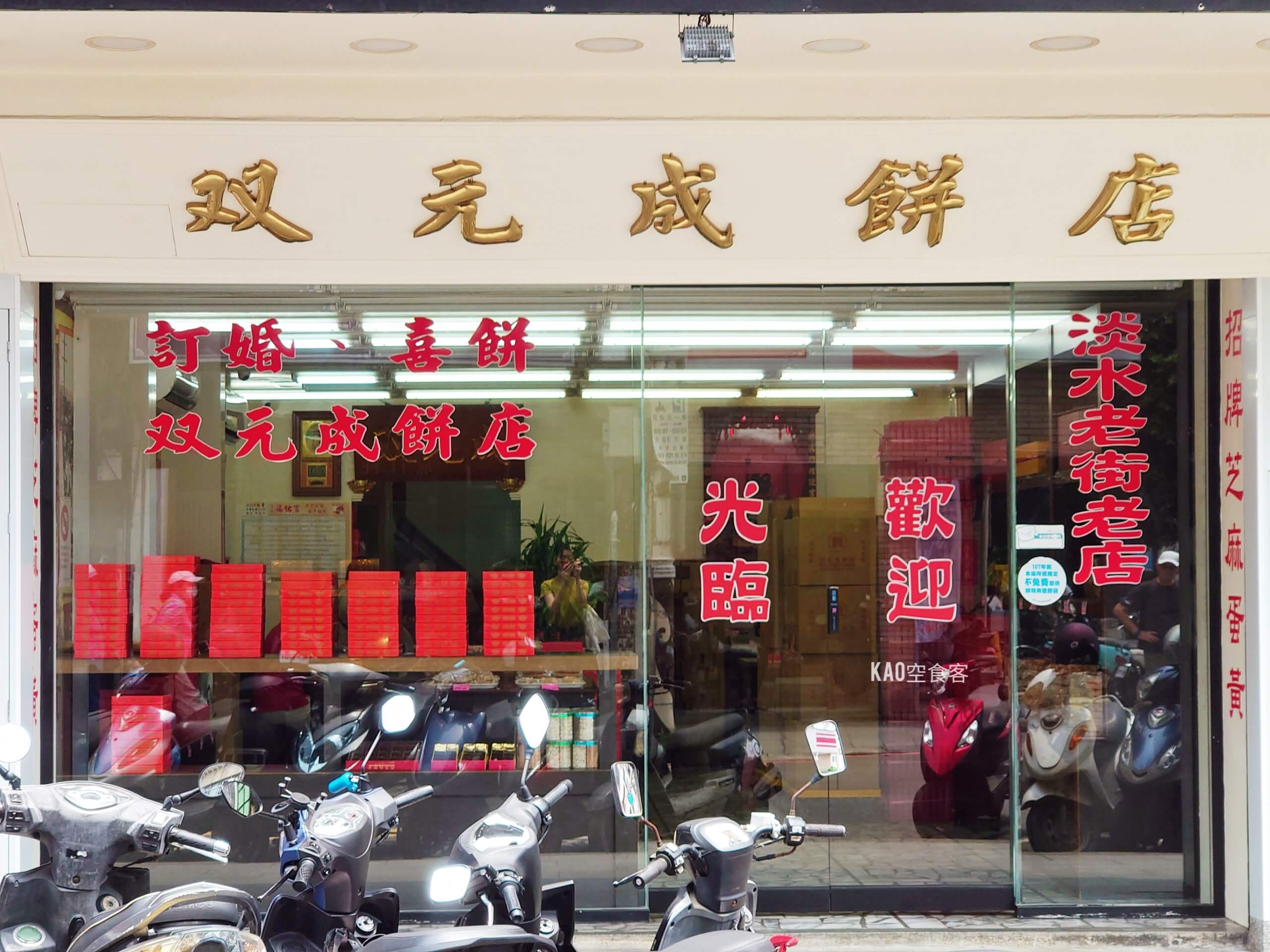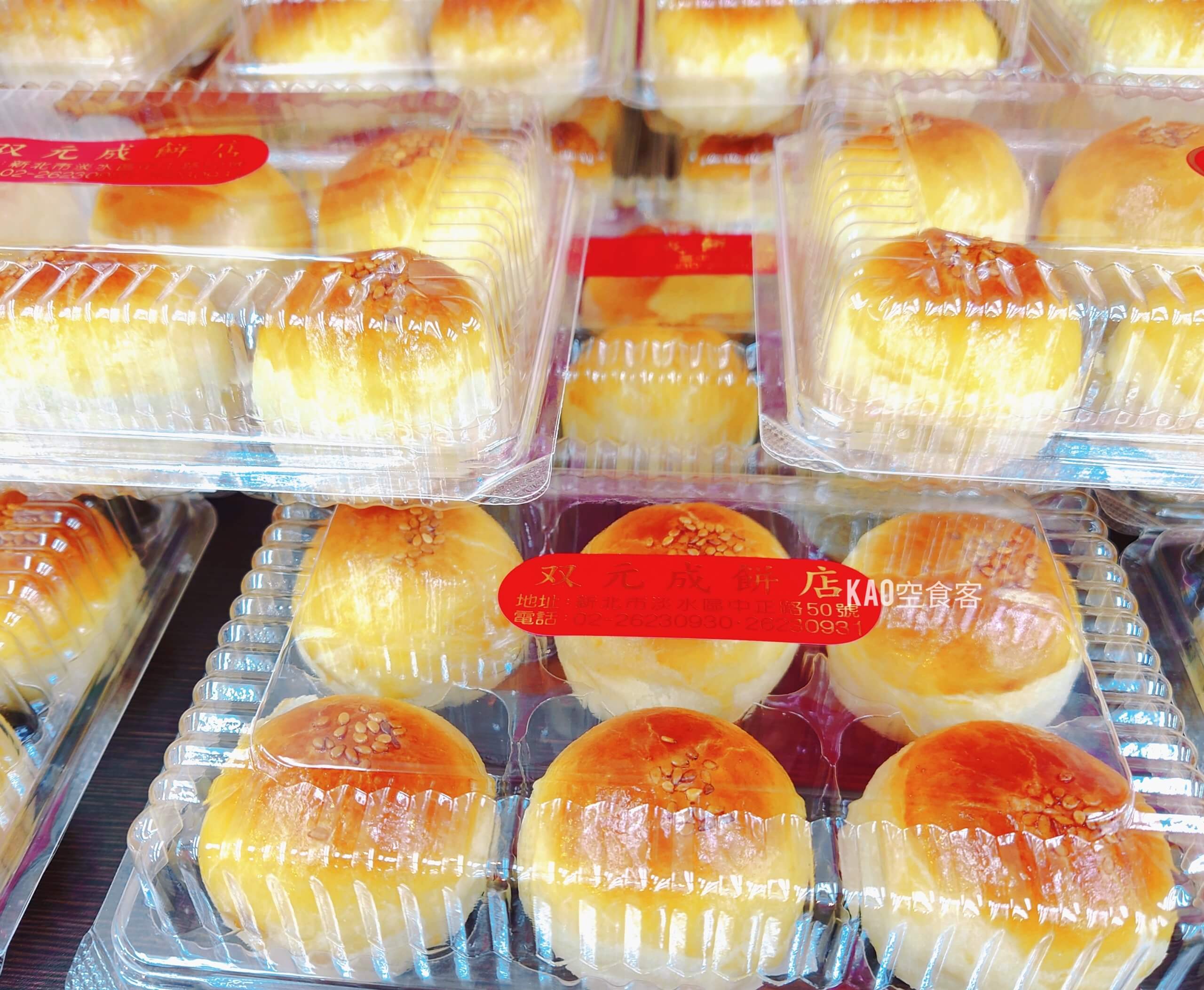 創立於1960年的雙元成餅店,是淡水老街上的傳統糕點名店。與淡水最知名的”新建成餅店”同源,後來兄弟分家各自經營,難怪芝麻餅味道那麼相似。雙元成以古早味大餅、月餅、各式中式糕點聞名,更販售喜餅禮盒。