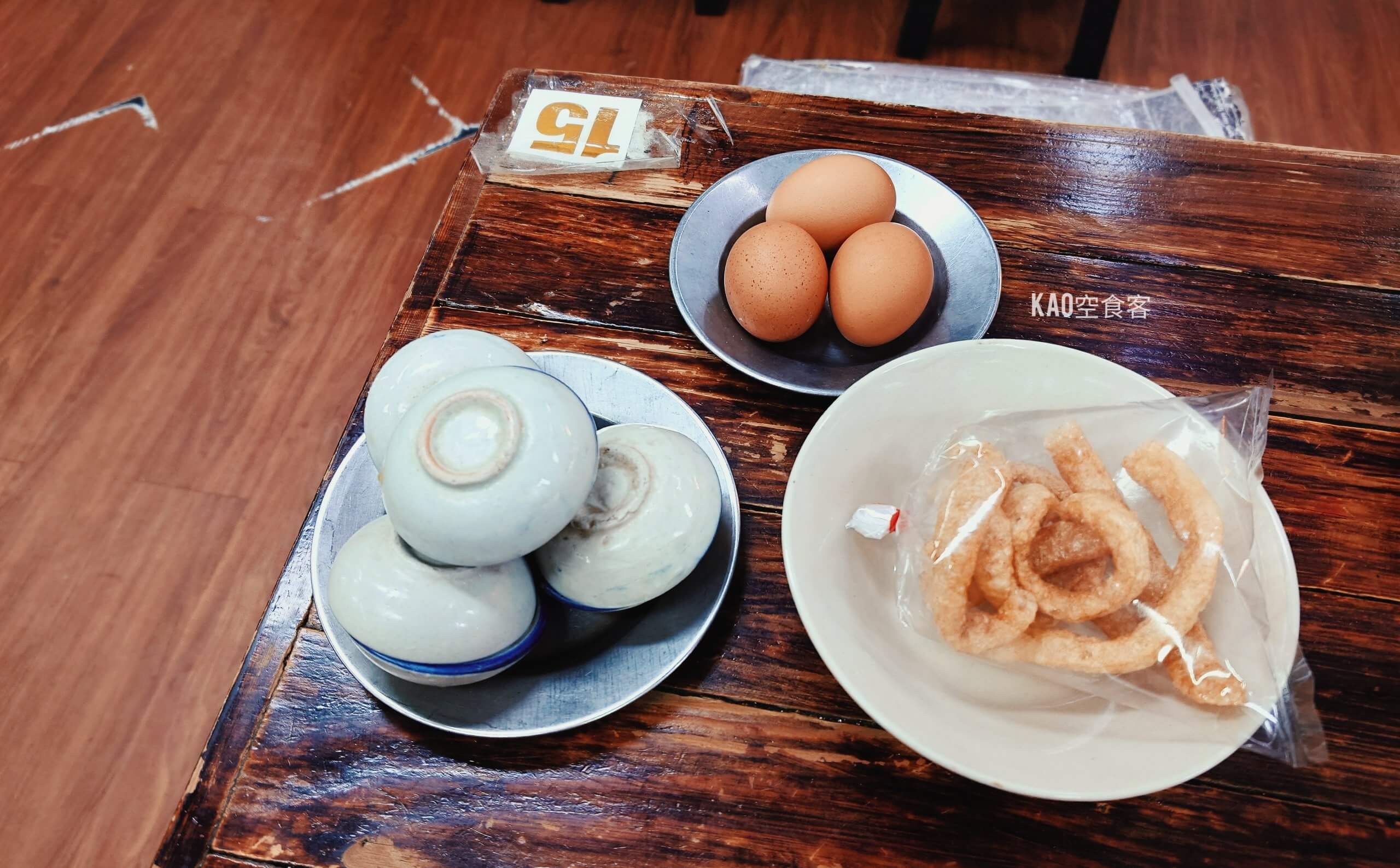 桌上擺放著椰子布丁和炸豬皮及雞蛋,可以自行享用,結帳時,告知店家食用數量一起算帳。感覺是很在地的小餐館,價格親民選擇多樣,有機會會再去試試其他。
