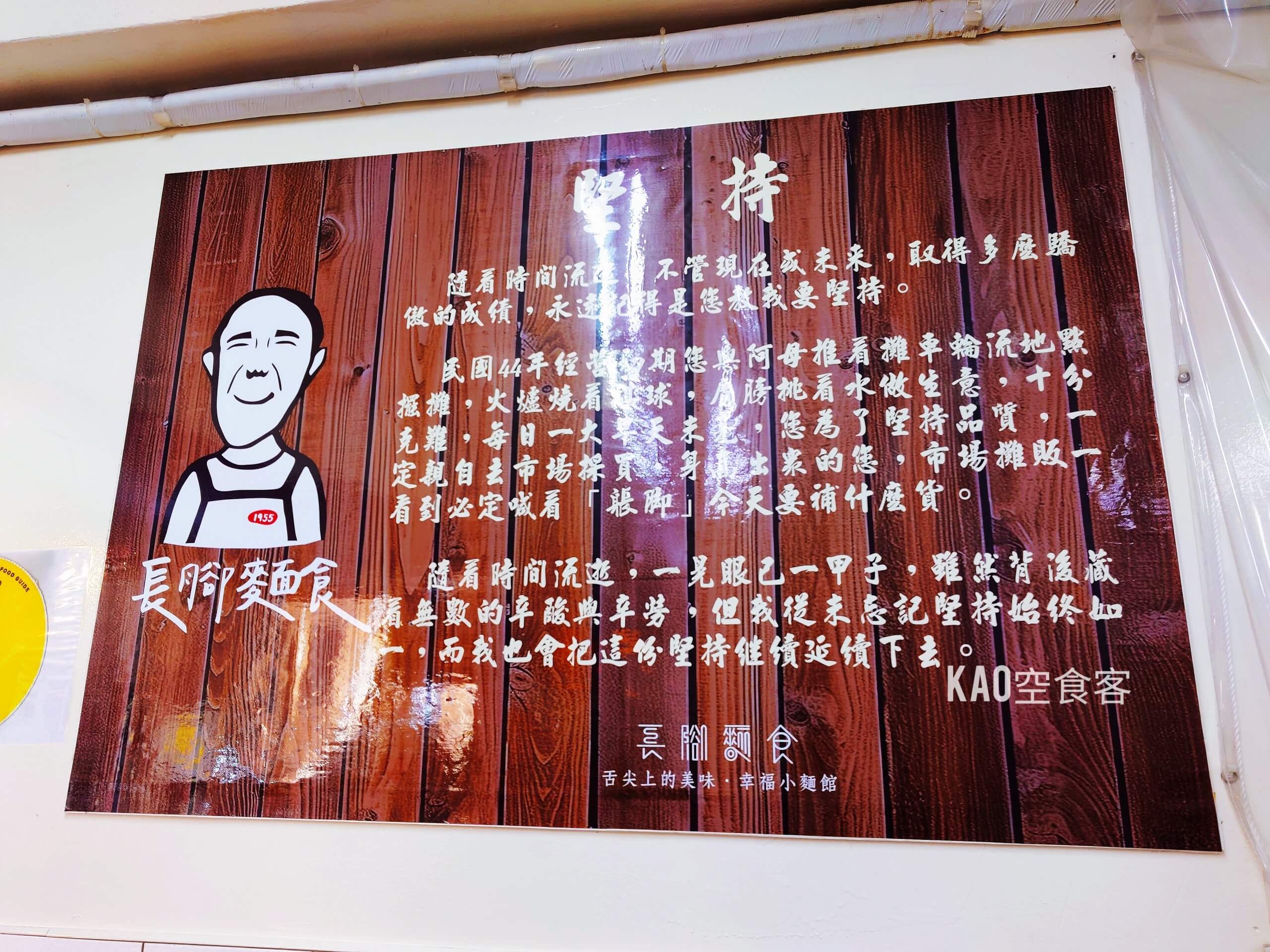 基隆孝三路”乾麵一條街”的代表之一,已過近七十年的歷史,是許多基隆人從小吃到大的滋味。豬油拌麵是長腳麵店的招牌,扁食和豬腳同樣是人氣之選。早期在地人的日常早餐就是乾麵配豬腳,吃的飽吃的好才好上工。