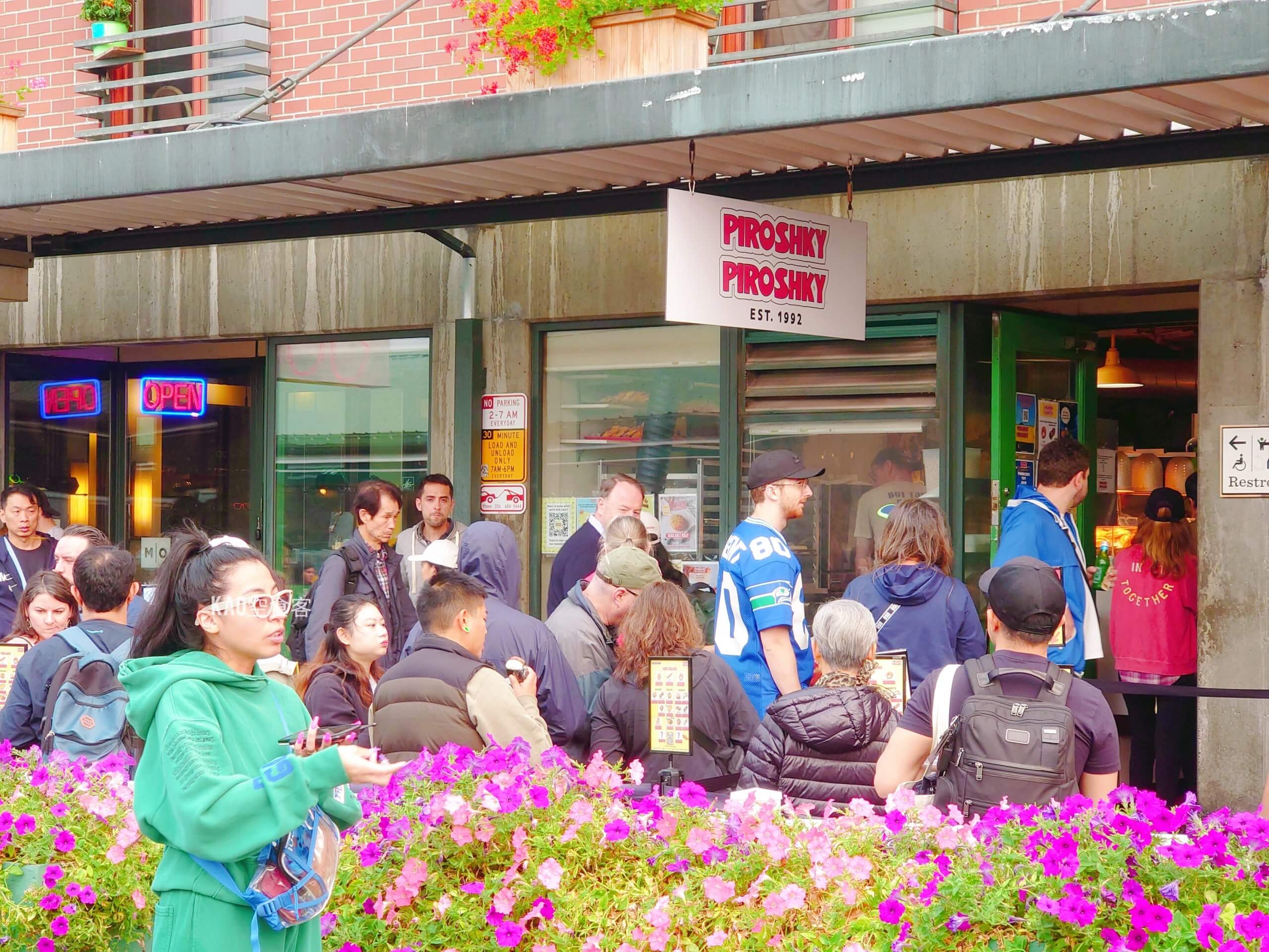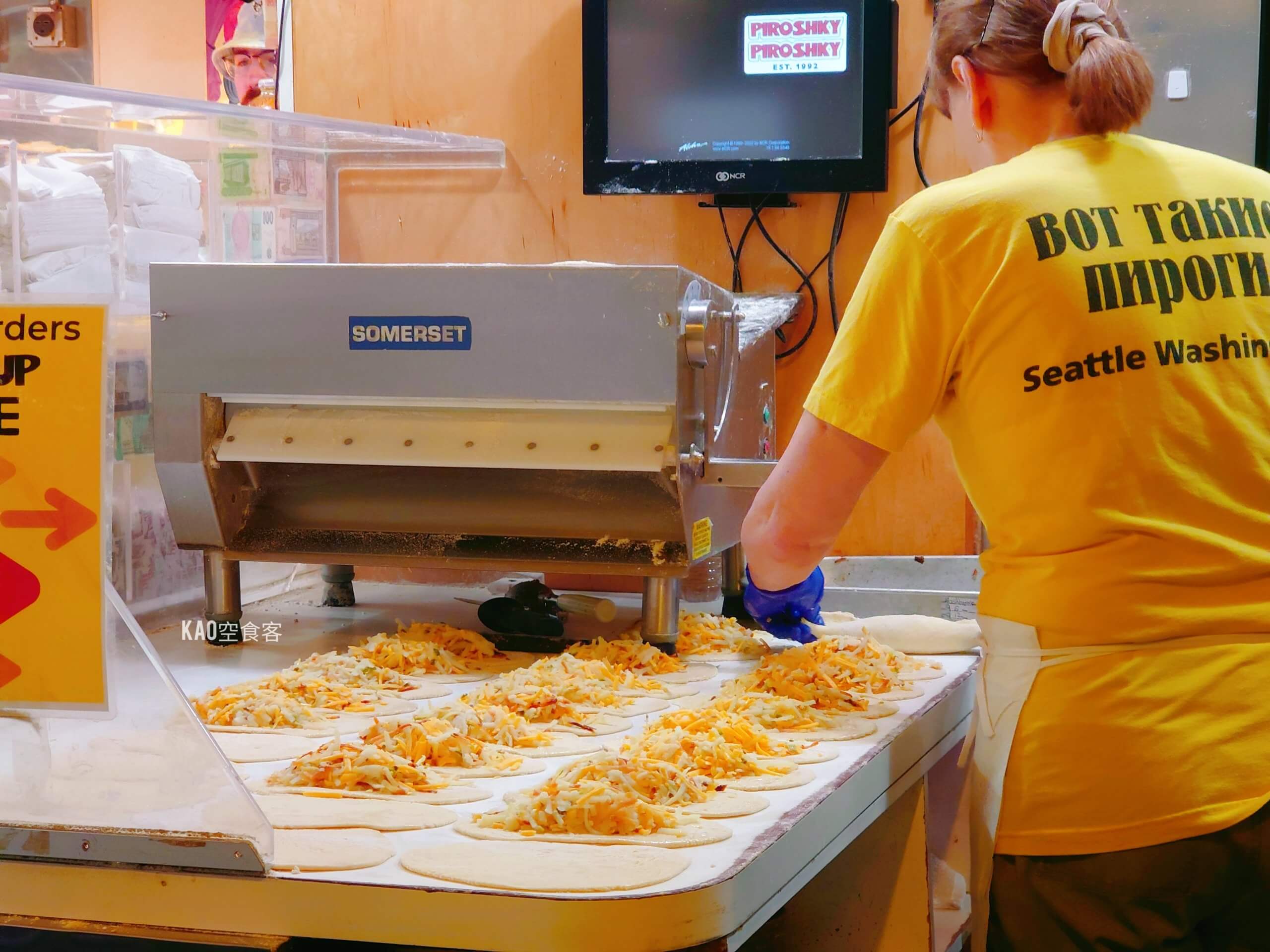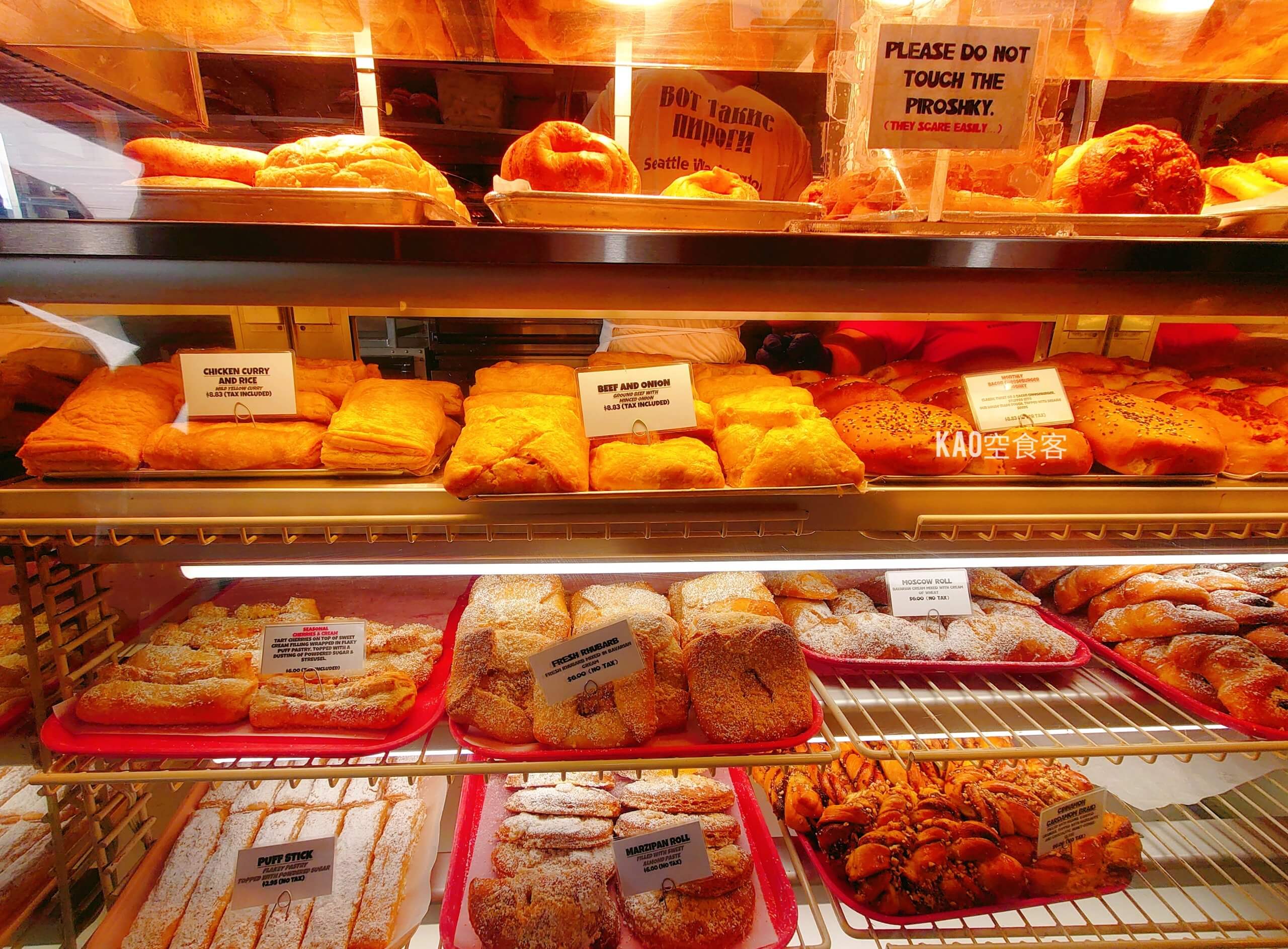 創立於1992年西雅圖派克市場,必訪美食地標Piroshky Piroshky。以現場手工製作各式鹹甜傳統俄羅斯糕點,使用小麥粉發酵麵糰,口感蓬鬆。