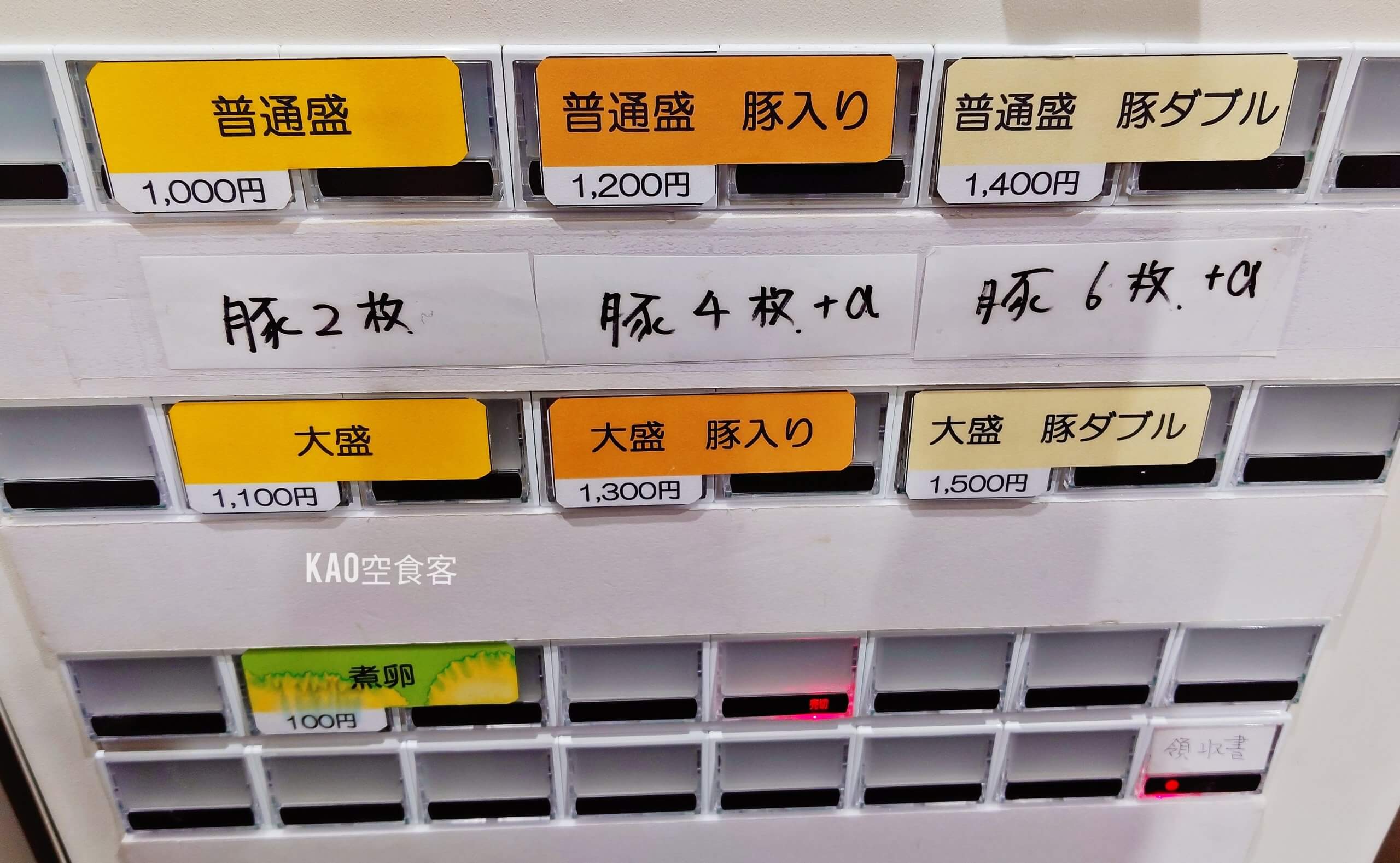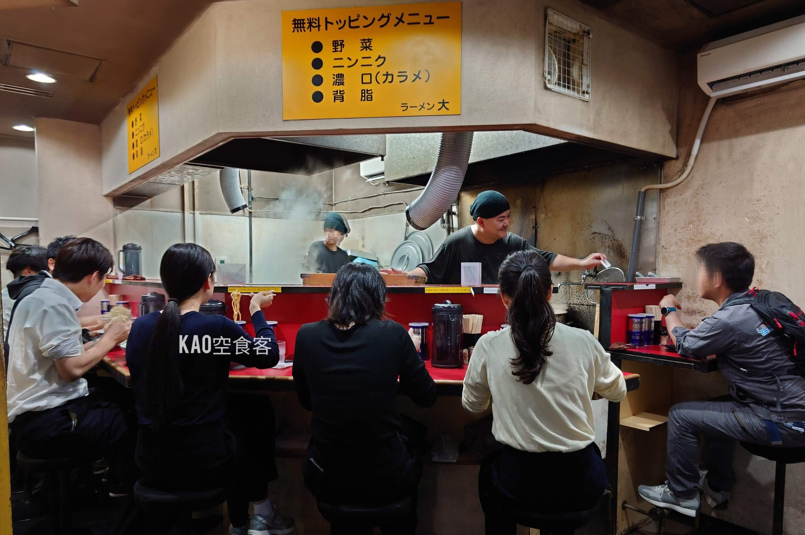 入店前先去販賣機買食卷再去排隊,輪到你時,店家會詢問麵量和配料的多寡。建議麵半分,豆芽菜和蒜末則可多加,普通盛吃完會吐。