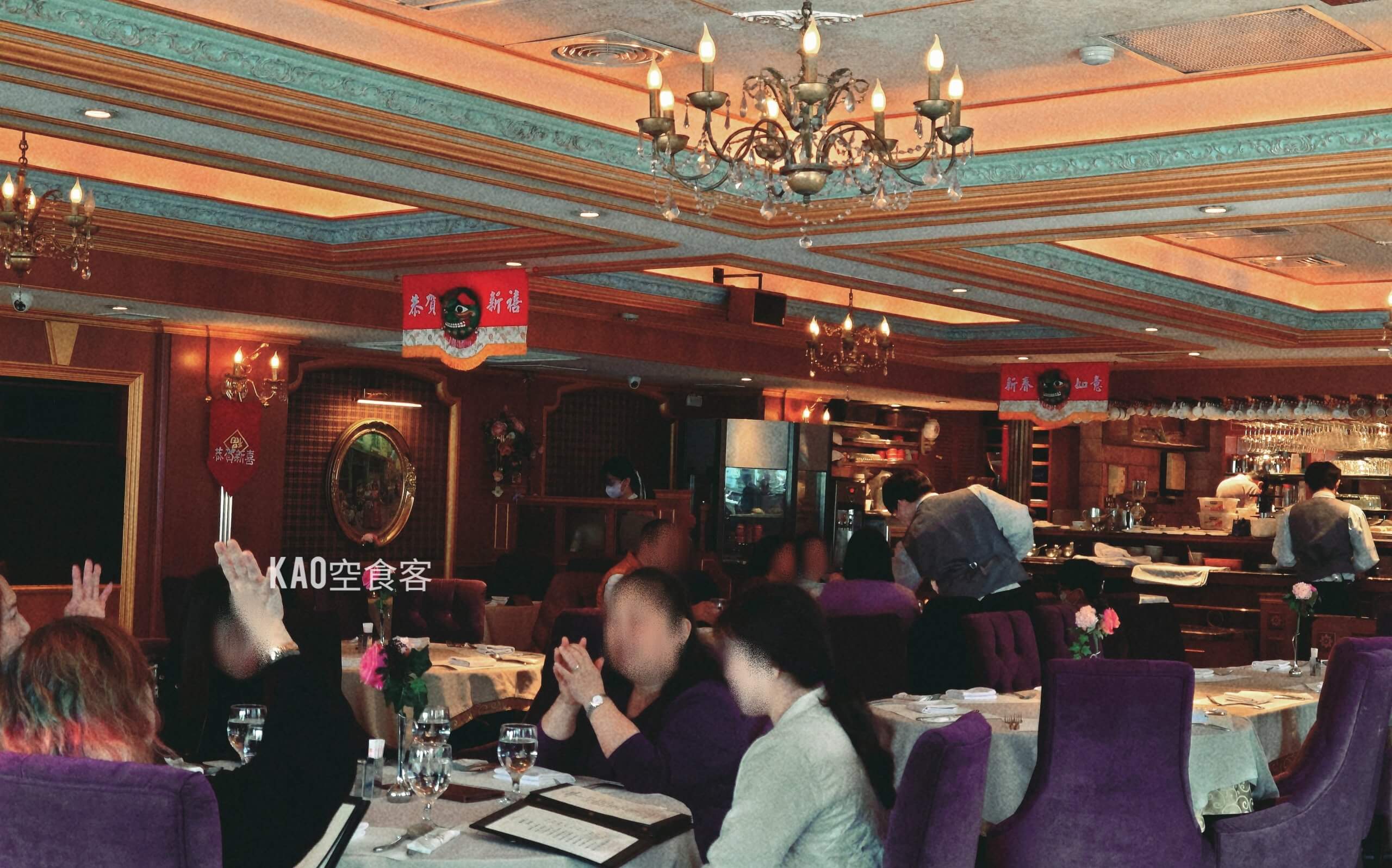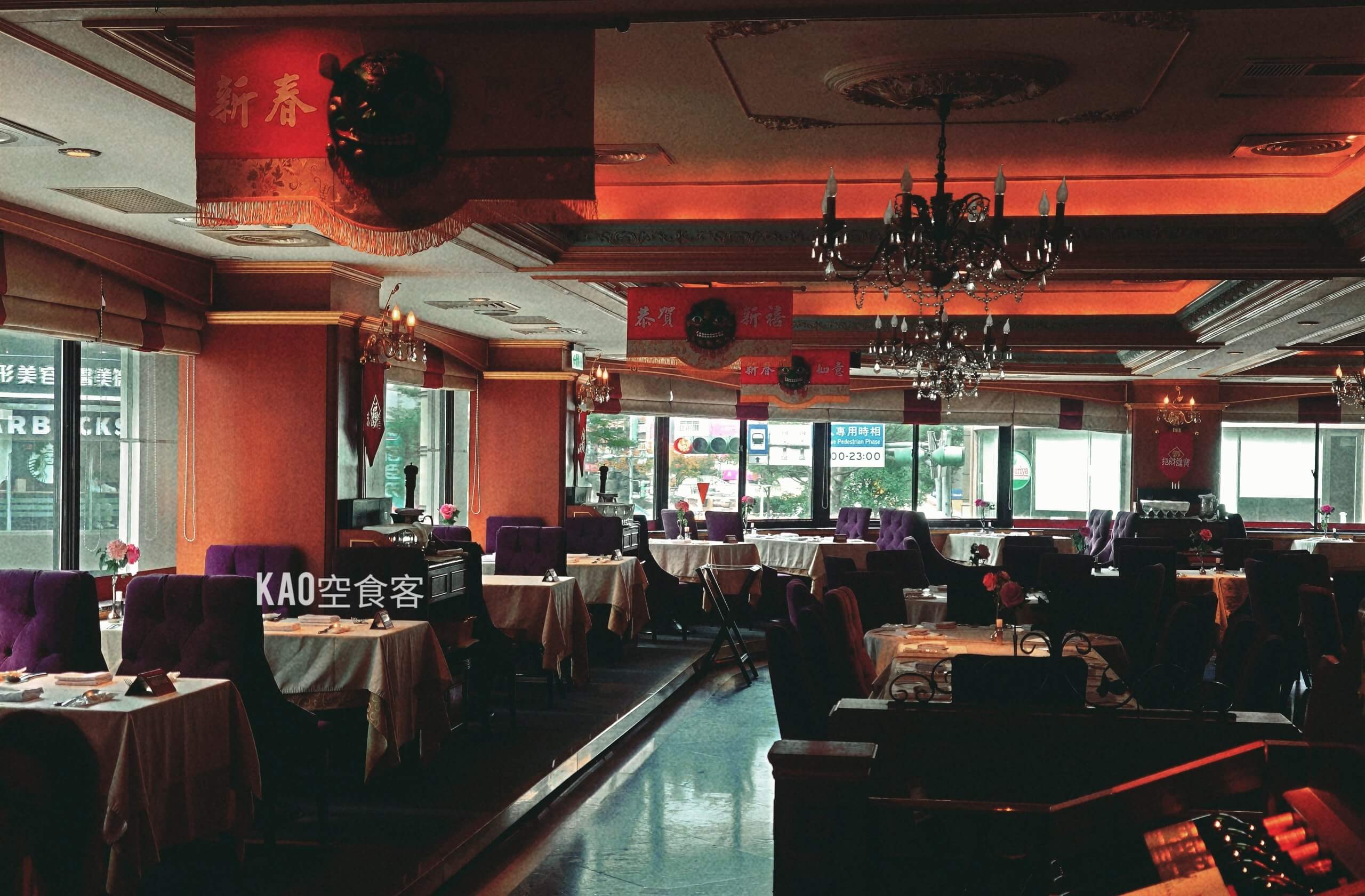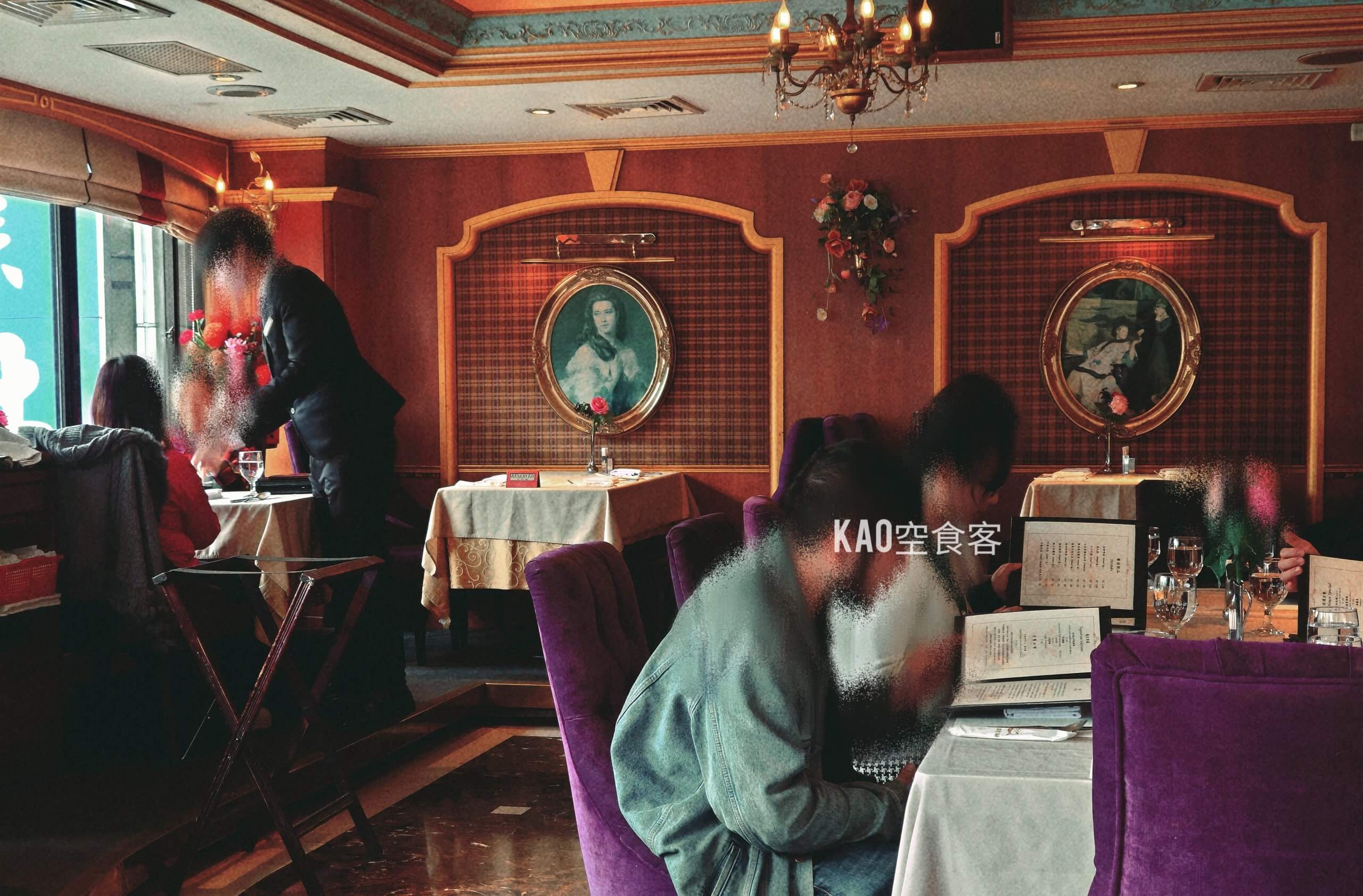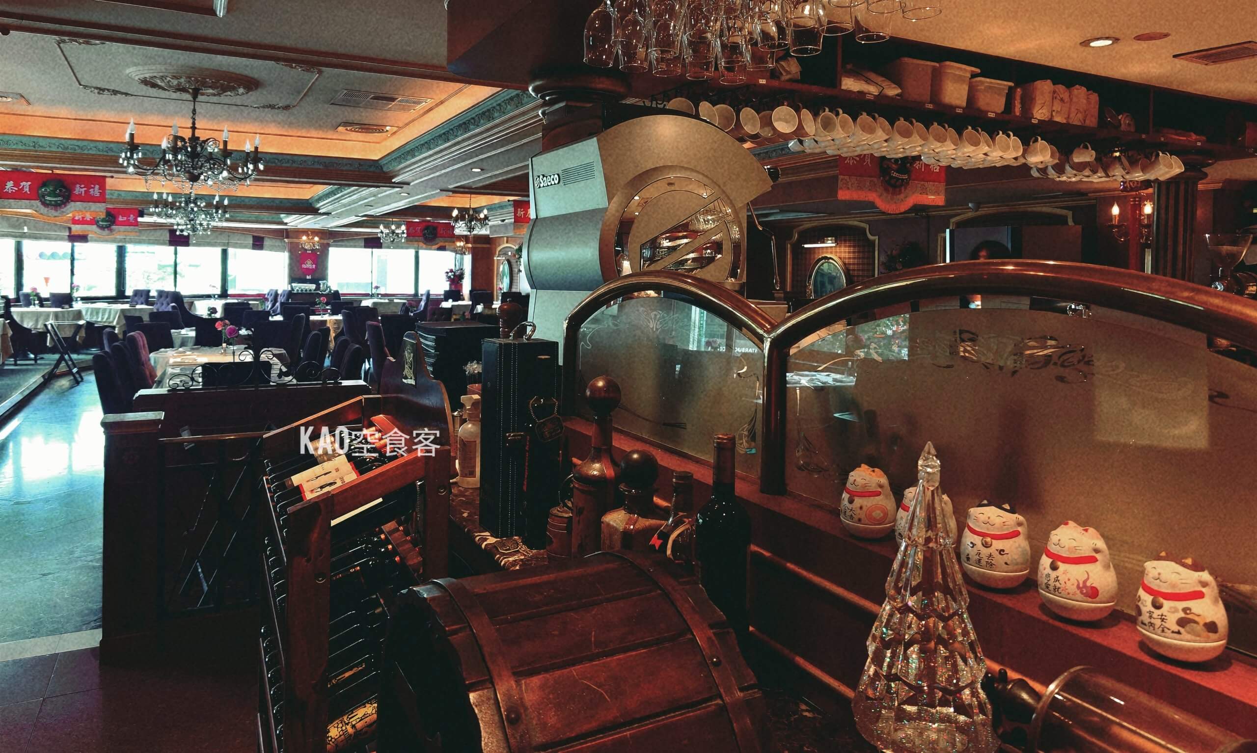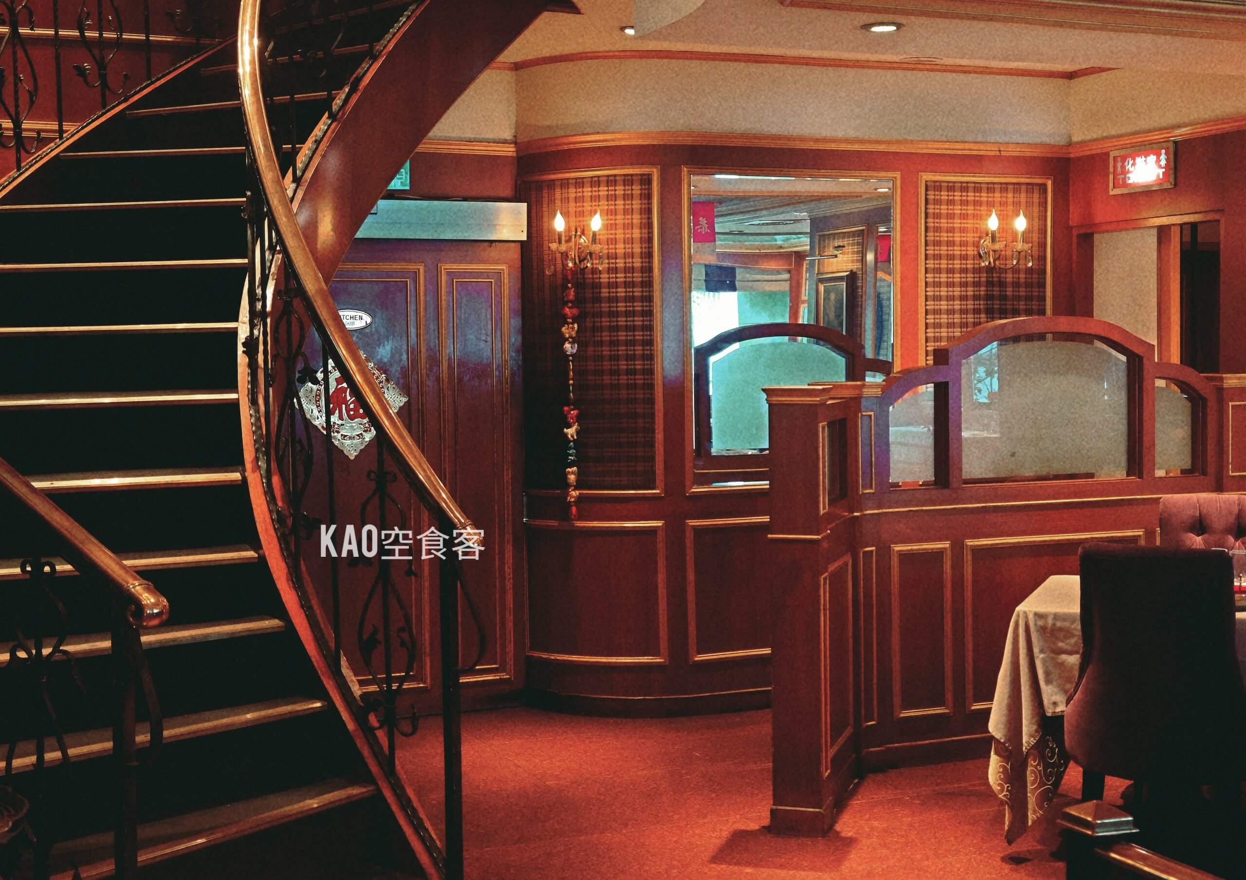 維多利亞式華麗的歐風裝潢,四十多年來都未改變,吊燈、紅地毯和絨布座椅營造出老派情懷。用餐當天多是四五年級生,據說是板橋人家族聚餐和約會首選。